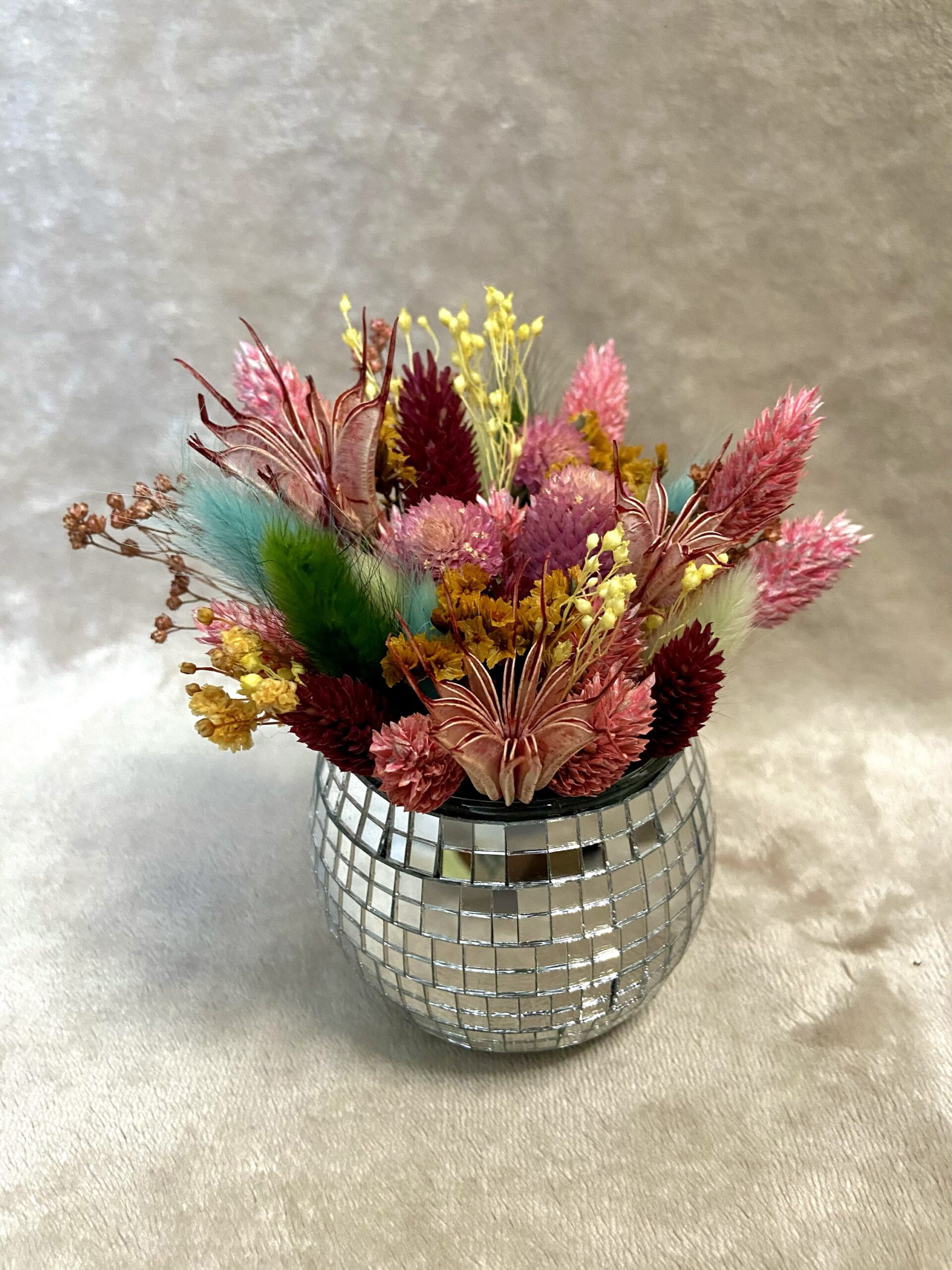 Vous aimez cette palette de couleurs? Personnalisez une autre composition (bouquet, couronne, boule disco…) en demandant la même palette ! Par ici